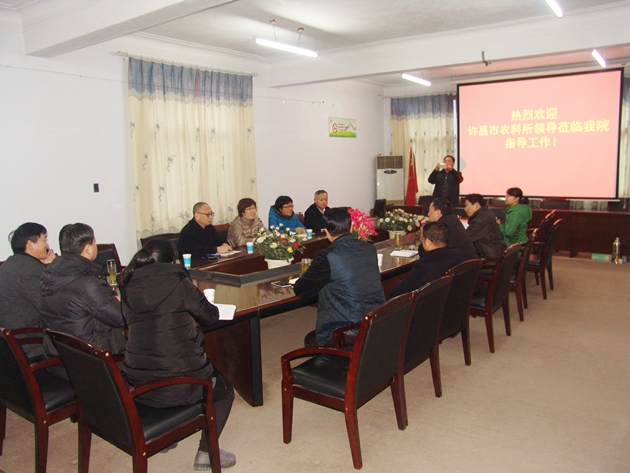 1月4日,許昌市農業(yè)局副局長(cháng)黃燕、許昌市農科所所長(cháng)鄭璐等一行6人對我院進(jìn)行了考察交流。